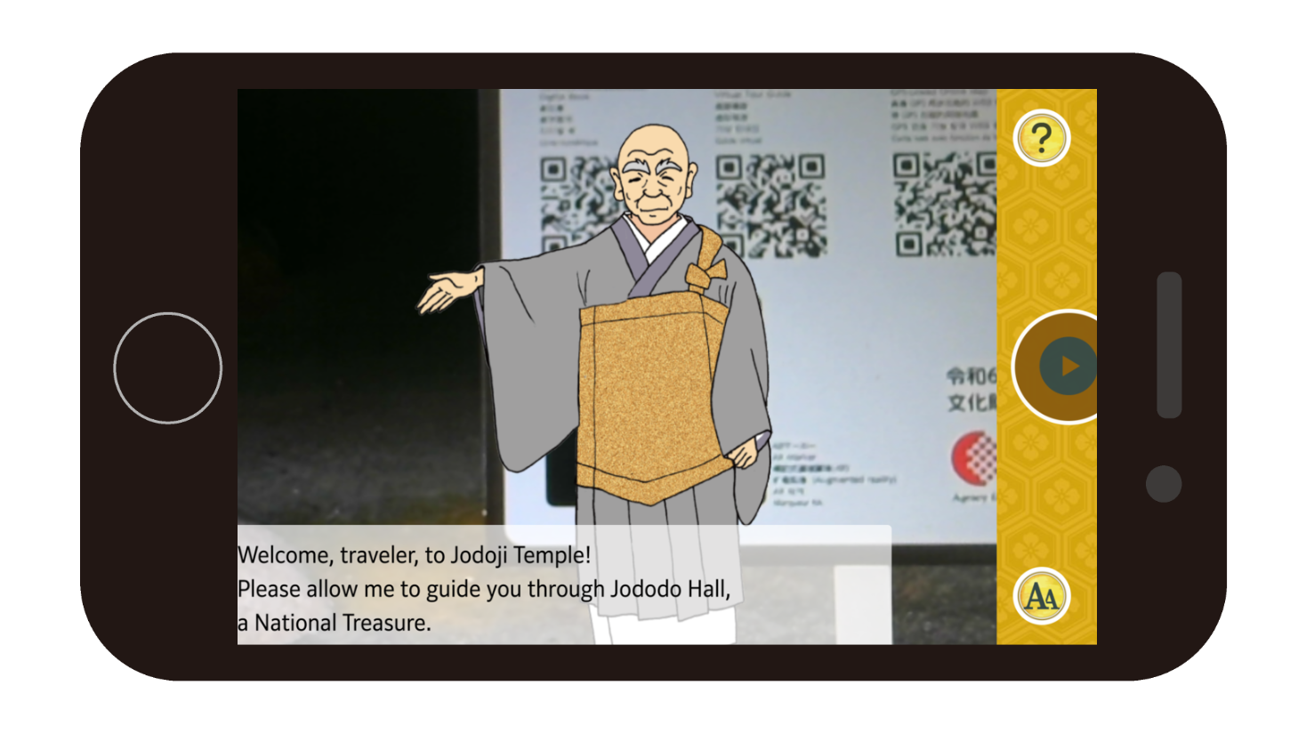 The Virtual Tour Guide explains cultural properties using characters that appear in your smartphone camera in front of the actual cultural property.