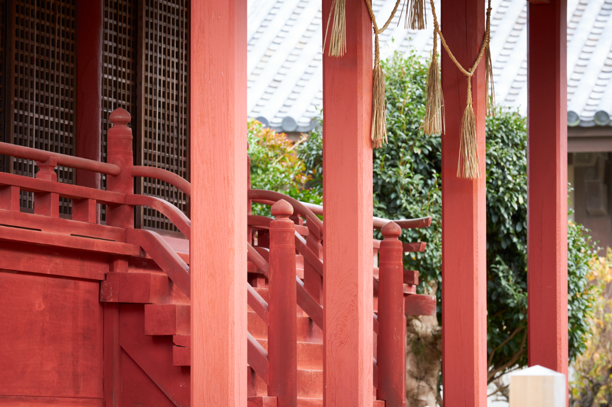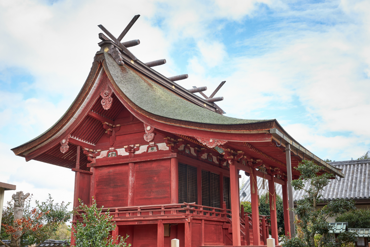 Allow me to introduce the Honden (main hall) of Hachiman Shrine. The Honden building sits behind the Haiden (worship hall).