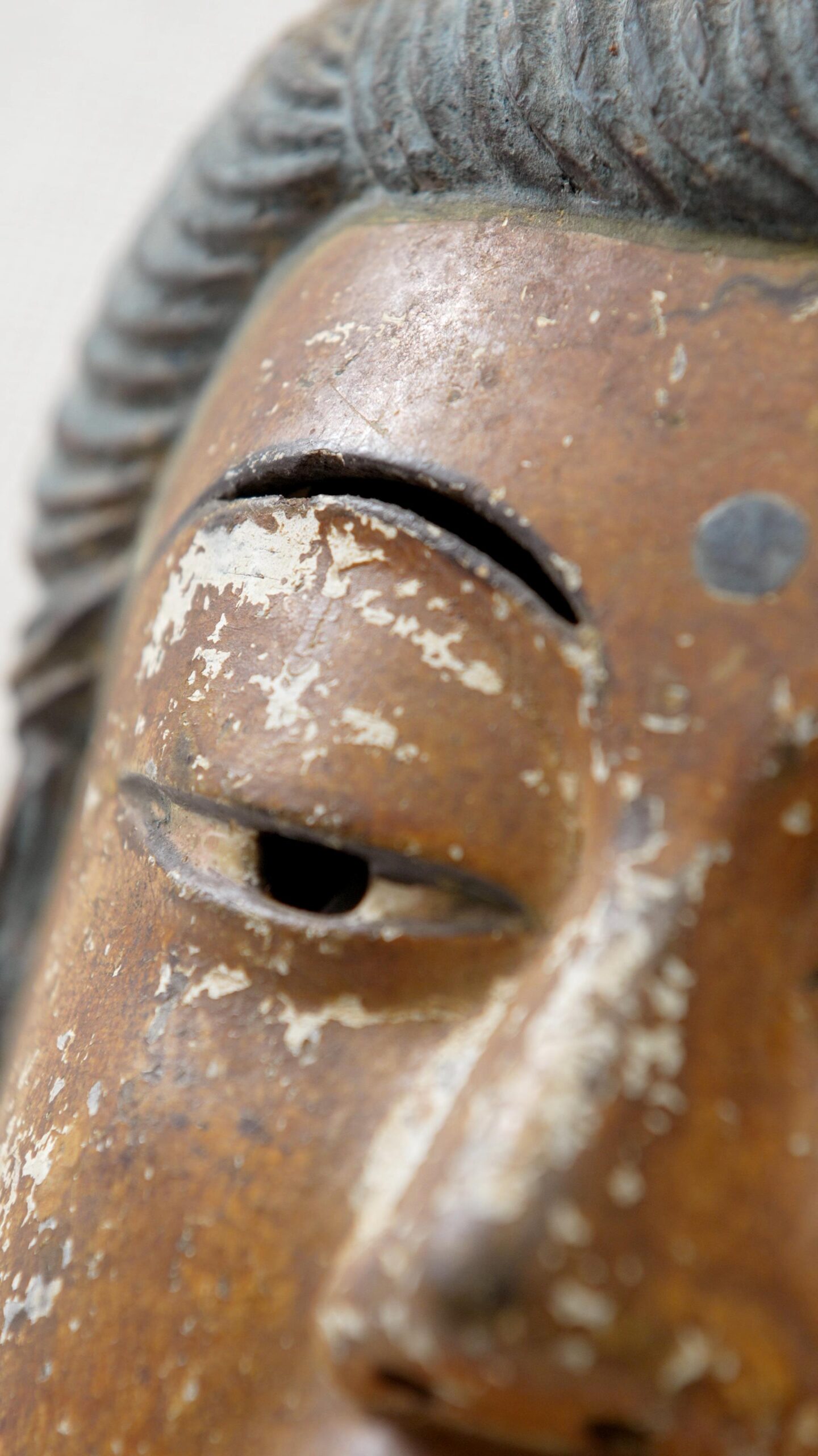 They are distinctive for their carved eyebrows, which are rare features on masks such as these.